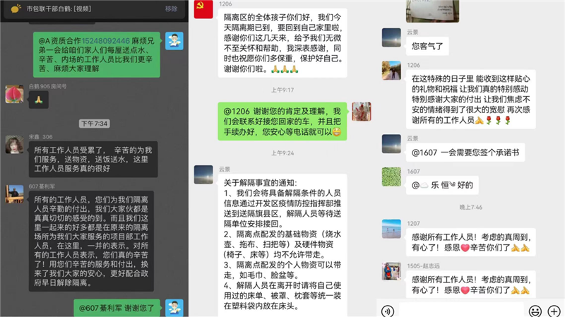 圖為公租房隔離點隔離人員感謝集團工作人員的溫暖守護